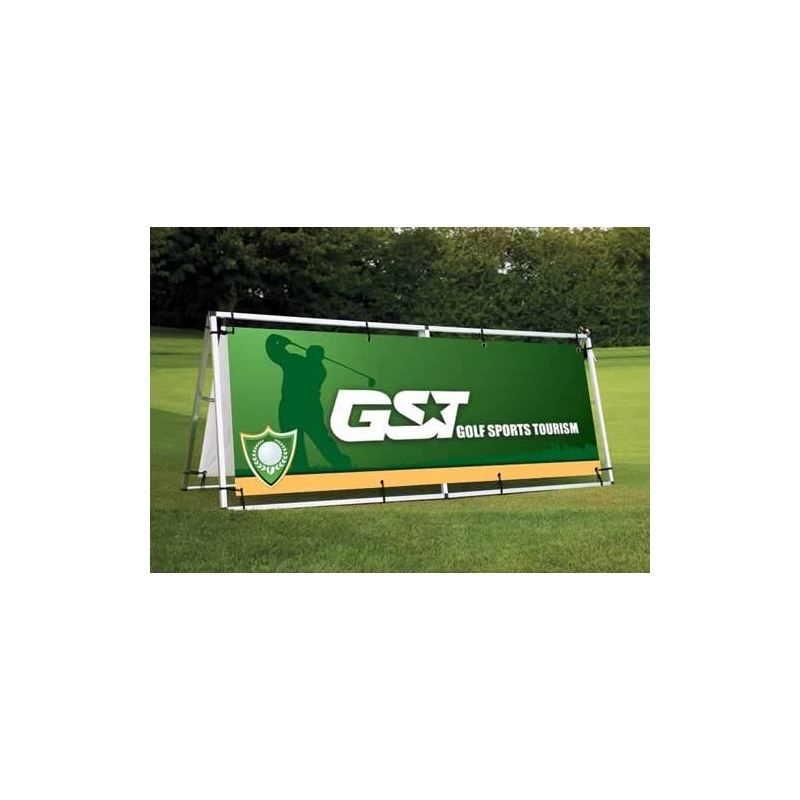 • Visuel interchangeable à fixer (sans outils) sur la structure à l'aide de tendeurs (inclus) sur 2 types de support :