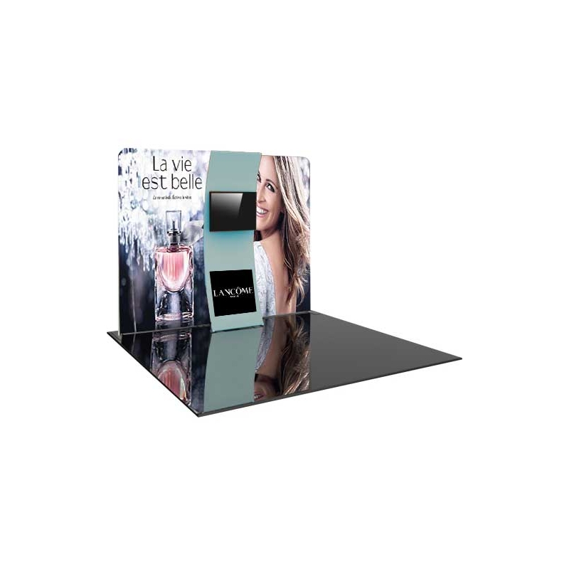 Tarif incluant structure aluminium, conditionnements & visuels. Spots en option.