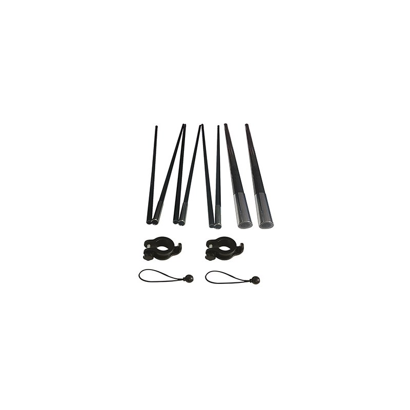 • Mât en fibre de verre – embouts en acier chromé, crochets plastiques