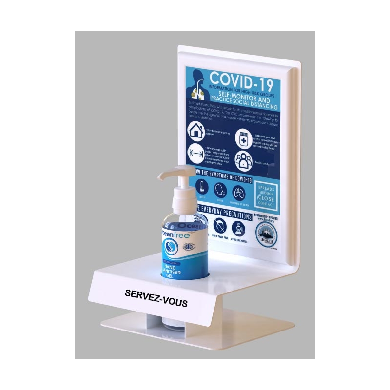 SUPPORT AUTOPORTANT PERSONNALISABLE - TOTEM DE COMPTOIR MOBILE DISTRIBUTEUR SOLUTION HYDROALCOOLIQUE