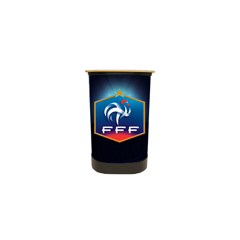 - Transformable en banque d'accueil avec son plateau bois et sa housse 100% personnalisée.